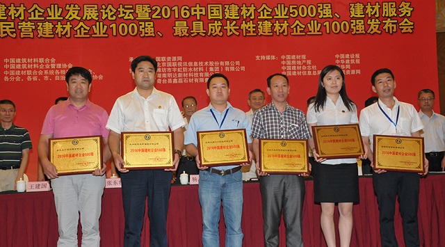 日前,2016年中國(guó)企業(yè)發(fā)展論壇暨中國(guó)建材500強(qiáng)、建材服務(wù)企業(yè)100強(qiáng)、民營(yíng)建材企業(yè)100強(qiáng)、最具成長(zhǎng)性建材企業(yè)100強(qiáng)發(fā)布會(huì)在北京隆重舉行。