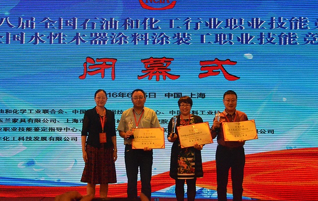 會(huì)議上表彰了一批十年來在推動(dòng)中國水性木器涂料產(chǎn)業(yè)化進(jìn)程中做出特殊貢獻(xiàn)的企業(yè)和個(gè)人,大寶漆除了獲得“中國水性木器涂料發(fā)展特別貢獻(xiàn)獎(jiǎng)”外,由大寶化工技術(shù)部林進(jìn)輝等人撰寫的《水性木器涂料在家具涂裝領(lǐng)域的干燥解決方案》和《自交聯(lián)丙烯酸酯乳液在水性木器封閉底漆中的應(yīng)用研究》還分別榮獲本次論文評(píng)選一等獎(jiǎng)和優(yōu)秀獎(jiǎng),大寶漆還奪得了“全國水性涂裝職業(yè)技能大賽團(tuán)體二等獎(jiǎng)”,而大寶化工工程師周光偉先生憑借多年水性涂裝經(jīng)驗(yàn)和精湛的技術(shù)榮獲“全國石油和化工行業(yè)技術(shù)能手”的榮譽(yù)稱號(hào)。
