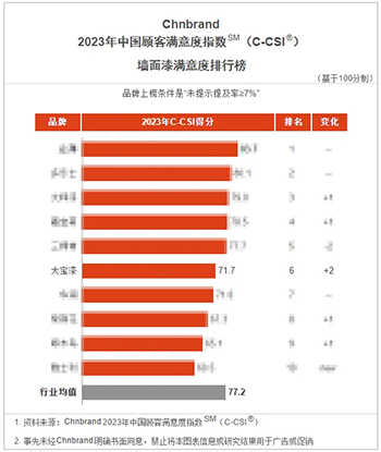 同時,Chnbrand今年首次將藝術(shù)漆納入評價范圍,大寶漆以總分90.5登頂“藝術(shù)漆滿意度排行榜”榜首。