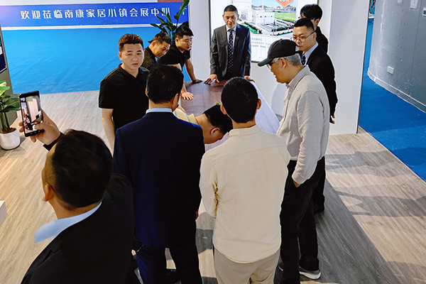 ▲南康區(qū)家具協(xié)會會長參觀大寶漆展館