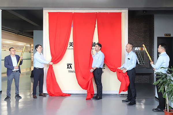 活動(dòng)伊始,在全體與會(huì)人員的共同期待下,張正賢總經(jīng)理、周志鴻副總經(jīng)理與葉小兵營銷總監(jiān)共同為全新展廳揭幕。