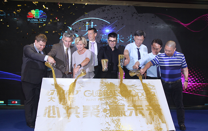 最后,大寶國際董事長陳賀生、經(jīng)銷事業(yè)部葉子琛副總經(jīng)理、荷蘭Global paint涂料公司代表、L’opera進口藝術(shù)涂料代表及眾多嘉賓一起舉行了新品發(fā)布啟動儀式。