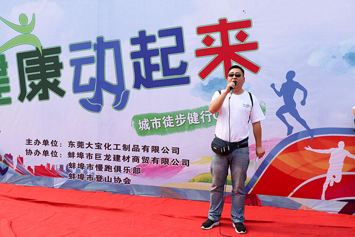 開幕式上,蚌埠慢跑俱樂部楊會長致開幕詞,他強調徒步和慢跑對于現代人們健康的重要性。大寶漆華東二區業務總監謝重亮向參加徒步的健將們介紹了戶外運動要注意的事項。接著,蚌埠巨龍建材張俊良總經理發言。他表示,大寶漆作為綠色環保涂料的制造商和涂裝解決方案的供應商,長期以來,秉持“堅持品質,永續環保”的理念,為廣大消費者提供綠色環保的涂料產品。此次大寶漆舉行蚌埠徒步健身活動,是希望為蚌埠市民帶來積極健康的生活方式,引導更多人參與運動,提高身體素質,與大家攜手共創健康的生活方式,共建綠色家園!最后他宣布2018年蚌埠大寶漆健康徒步行活動正式開始。