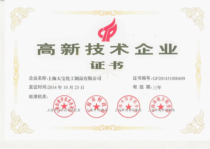 上海大寶在如此外在壓力下,捷報(bào)不斷。為了滿足大寶漆“精益求精,專業(yè)服務(wù),致力創(chuàng)新,持續(xù)改善”的宗旨,上海大寶于2011年首次申請并通過了“上海市高新技術(shù)企業(yè)”,并于2017年10月成為上海市第一批公示的高新技術(shù)企業(yè),這是上海大寶繼2011年被認(rèn)定為高新技術(shù)企業(yè)后第三次順利通過認(rèn)定;2017年11月完成區(qū)企業(yè)技術(shù)中心復(fù)核工作;此外,也順利獲得“十環(huán)認(rèn)證”證書。經(jīng)過上海大寶同仁的共同努力,在如此嚴(yán)苛的大環(huán)境條件下,上海大寶在2017年才能交出如此亮麗的成績。