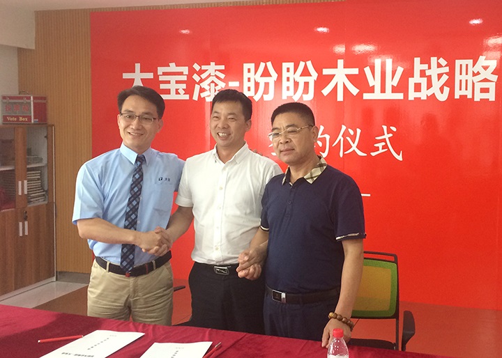 6月3日,“大寶漆-盼盼木業(yè)集團戰(zhàn)略合作簽約儀式”在武漢硚口區(qū)保利香檳國際舉行,正式確立戰(zhàn)略合作伙伴關(guān)系,盼盼木業(yè)集團采購總監(jiān)李躍和與大寶化工經(jīng)銷事業(yè)部副總經(jīng)理葉子琛共同簽訂戰(zhàn)略合作。與盼盼木業(yè)的合作,是大寶漆在家具漆渠道的又一力作。