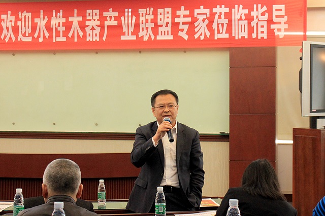 中國水性木器涂料產(chǎn)業(yè)聯(lián)盟主席楊獻發(fā)言