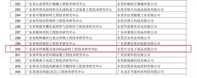 根據廣東省創(chuàng)新驅動發(fā)展的指示,2016年,全省科技工作將由深入謀劃布局轉入全面推進落實階段,全面深化科技體制改革,強化重點領域科技攻關和重大科技成果產業(yè)化,特別開展了“2016年度廣東省工程技術研究中心認定工作”,鼓勵企業(yè)開展基礎性前沿性創(chuàng)新研究。東莞大寶化工依托涂料產業(yè)創(chuàng)新技術、專精的科研隊伍,為“廣東省水性樹脂及低VOCs涂料工程技術研究中心”在水性、環(huán)保涂料研發(fā)技術上的突破作出了特別貢獻,獲得了廣東省科學技術廳特別認定。