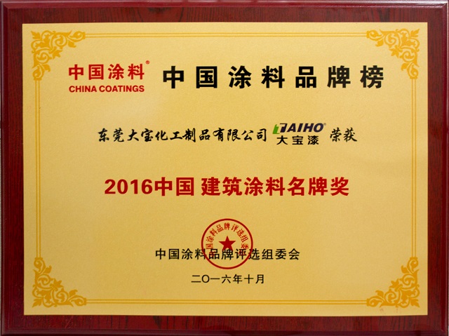 大寶漆憑借其優(yōu)異的產(chǎn)品品質(zhì)和極高的品牌影響力榮膺“中國(guó)建筑涂料名牌獎(jiǎng)”和“中國(guó)木器涂料名牌獎(jiǎng)”,業(yè)務(wù)部劉國(guó)勇副理代表大寶化工出席并領(lǐng)獎(jiǎng)。