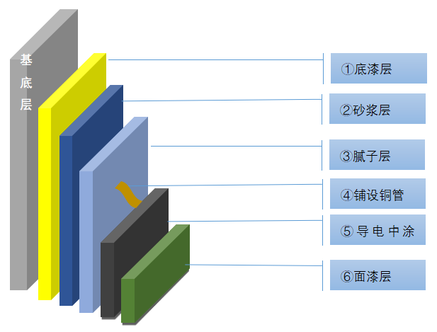 橫、縱向間隔4m(或按設計要求)鋪設銅箔(銅箔上用EPD-401A/B封閉一遍) |