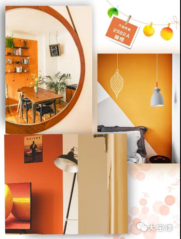 香橙色可作餐廳的布置色,增加食欲;可做臥室背景墻色,愈發(fā)溫暖;用作客廳的點(diǎn)綴色,營造空間時(shí)尚格調(diào)。