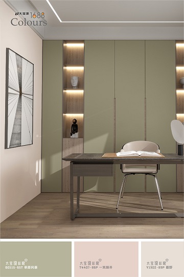 T4407-86P 一笑顏開是極佳的過渡色與背景色,在空間設計中,用于主墻面時,它能與木質家具相互呼應,讓整體更具親近感。若點綴在抱枕、窗簾、床品等布藝中,則帶來一種低調的舒心,讓家中隨處都能拾起笑意。