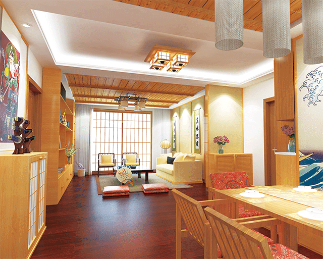日式風(fēng)格又稱(chēng)和風(fēng)、和氏,它繼承了中國(guó)古代佛教寺廟、傳統(tǒng)神社以及中國(guó)唐代建筑的特點(diǎn)。現(xiàn)代日式設(shè)計(jì)風(fēng)格直接受日本和氏建筑影響,講究空間的流動(dòng)與分隔,其室內(nèi)設(shè)計(jì)色彩多偏重于原木色以及竹、藤、麻等天然材料顏色,以營(yíng)造靜謐、禪意的居室環(huán)境。